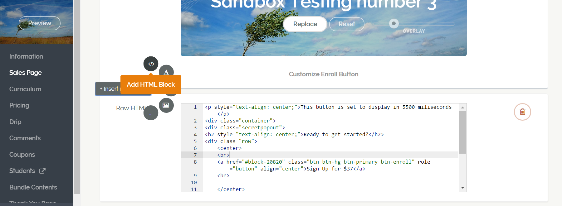 This is where I added it in Teachable (as an HTML Block)